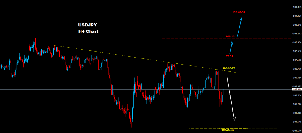 طالما السوق متماسك تحت مستويات المقاومة 70-106.50 فإن موجة تراجع جديدة نحو مناطق 40-104.20 قد تضرب السوق