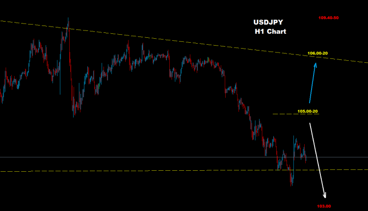 طالما السوق متماسك تحت مستويات 20-105.00 فإن موجة التراجع قد تستمر نحو أهداف مناطق 103.10