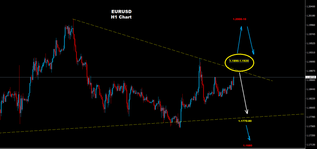 فوق مستويات 1.1920 فإن فرص مزيد من الصعود سيكون قائم بالسوق مع حواجز مقاومة على أسعار 1.1965 و 1.2010