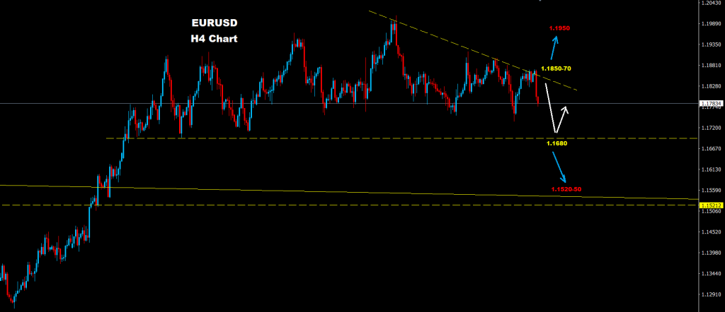 تحت مستويات 1.1680 مزيد من التراجع والهبوط نحو مستويات 1.1620 و 50-1.1520 سيكون متوقع