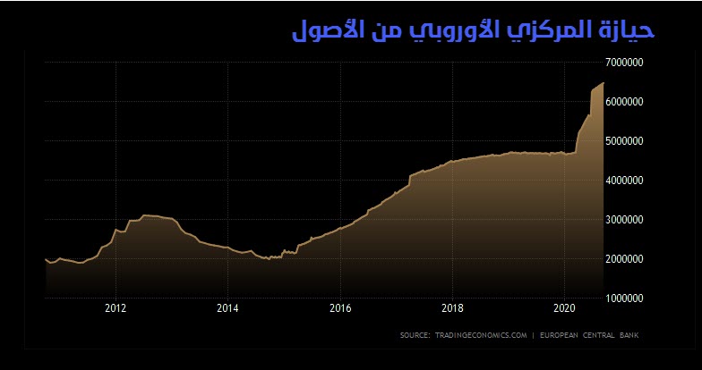 على صعيد آخر، ارتفعت قيمة الموازنة العامة لدى البنك المركزي الأوروبي أعلى من 6.5 تريليون يورو لأول مرة على الإطلاق. وبالرغم من ذلك لكنها تمثل نسبة أعلى بكثير مقارنة بالفيدرالي من الناتج المحلي