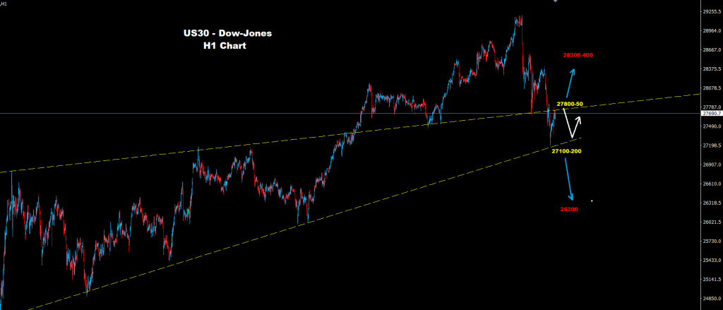 نجح مؤشر الداو بالتراجع والهبوط تحت مستويات 27700 حيث تمكن من اختبار مناطق الهدف والدعم 200-27100 كما أشرنا له مبكراً هذا الأسبوع