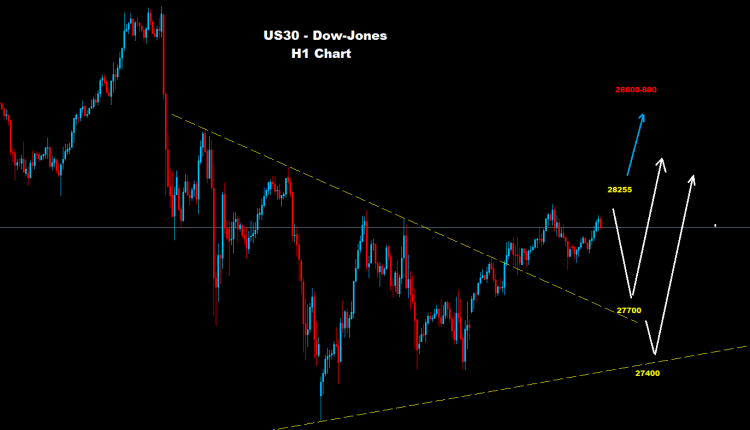 نجح مؤشر الداو بالحفاظ على تداولاته فوق مستويات الدعم 400-27300 حيث تمكن من الصعود وضرب بضع نقاط فوق حواجز 28200