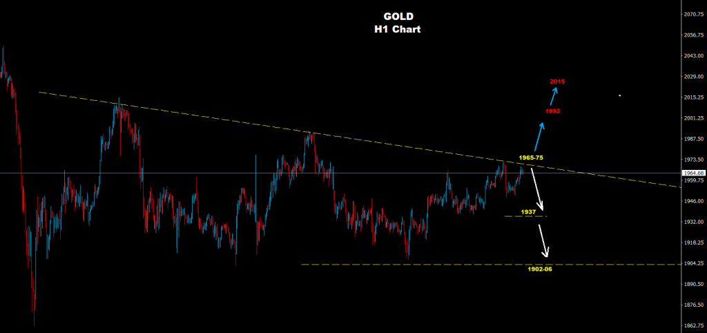 فوق مناطق 1975 فإن فرص مزيد من الارتفاع قد تضرب السوق حيث سيواجه الذهب مستويات مقاومة حول مناطق 1992 و 2015