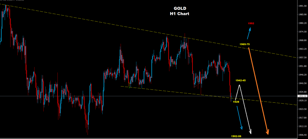 المدى اليومي الجديد يظهر مستويات دعم على مستويات 1928 والتي قد تدفع ببعض الارتداد التصحيحي لمناطق 45-1942 قبل عودة ضغوط الهبوط للتوجه لمستويات 1920 و 06-1902