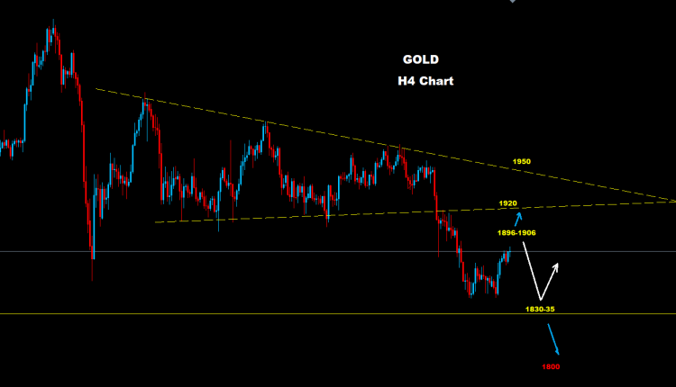 نجح المعدن الثمين باختبار مستويات المقاومة 1906-1896 حيث نجح بالتراجع منها نحو مستويات 1881 حتى هذه اللحظة