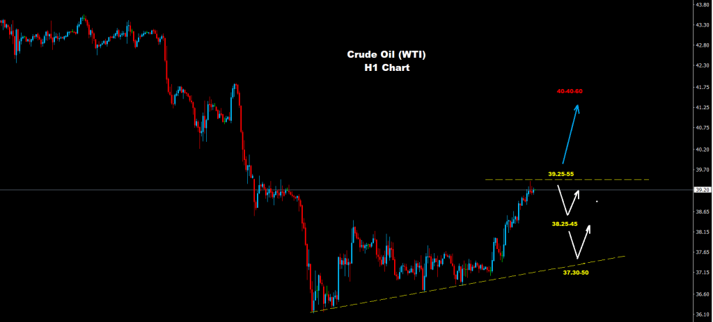 تحت مستويات 38.25 فإن مزيد من التراجع والهبوط لمناطق 50-37.30 قد تضرب السوق قبل أن يعود النفط لموجة الصعود