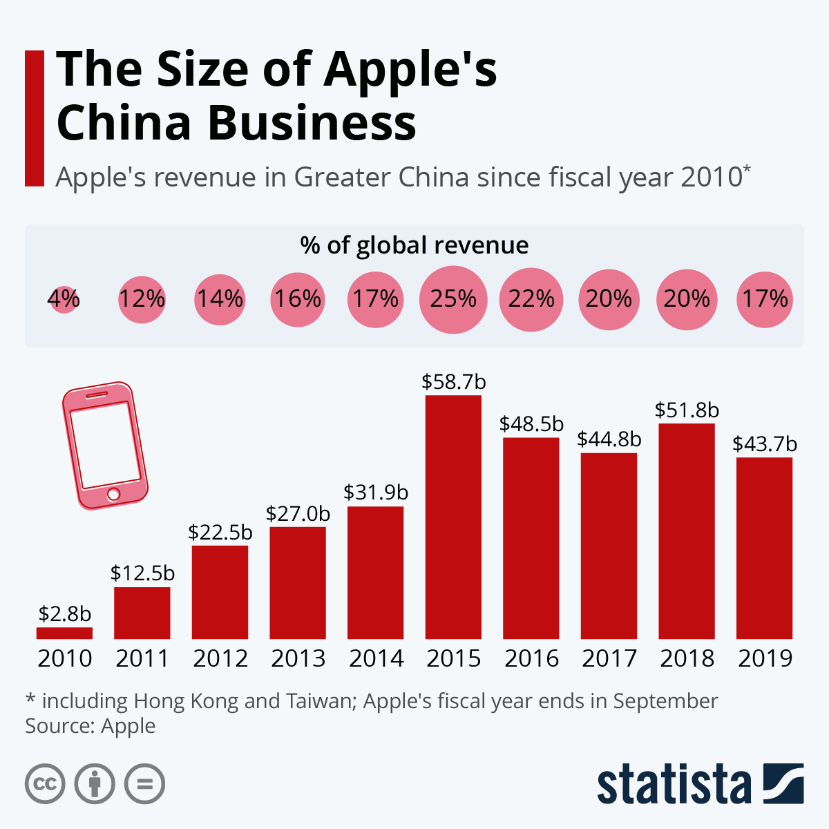 وهو ما رأيناه في مبيعات أجهزة “آيفون” بالصين خلال الأعوام السابقة، وبالرغم من تصاعد الحرب التجارية بين الصين والولايات المتحدة الأمريكية.