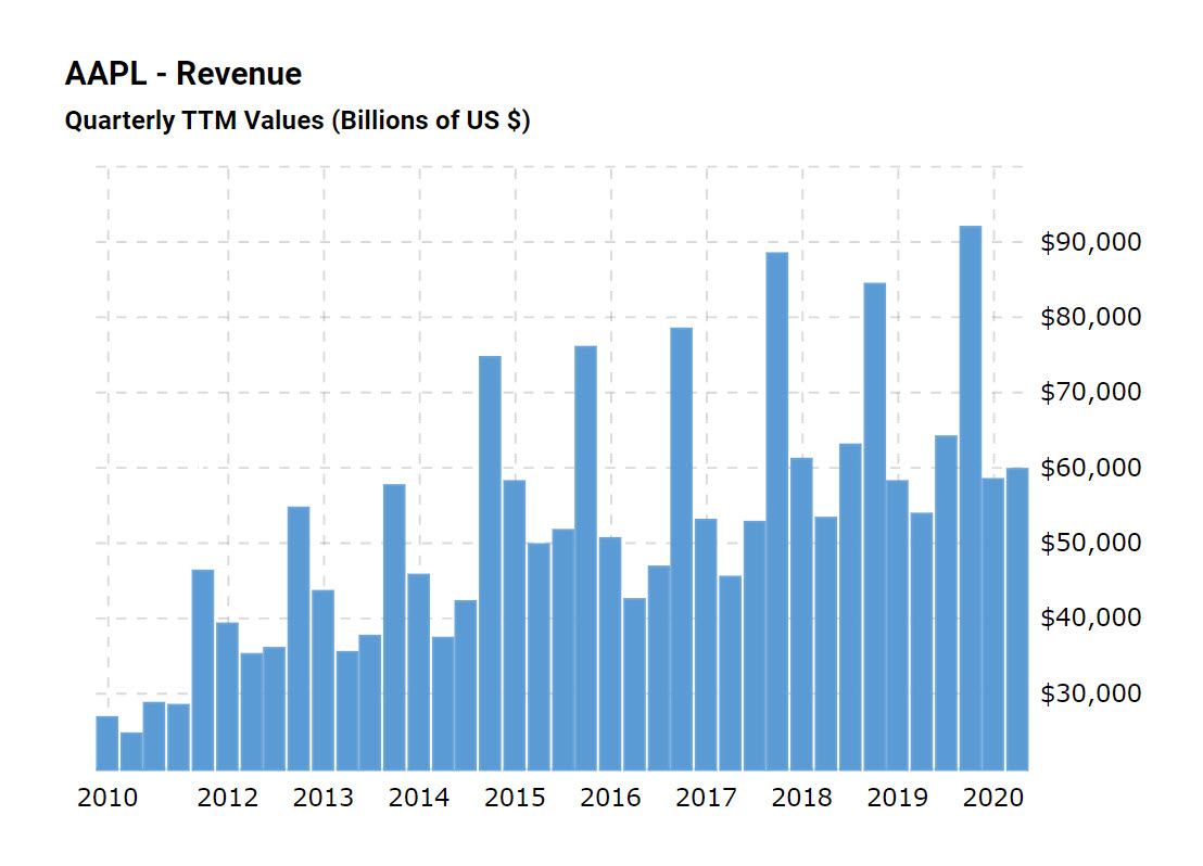 سجلت الشركة إيرادات ربع سنوية قدرها 59.7 مليار دولار، وهذا بزيادة قدرها 11% عن ربع العام الماضي مع أرباح ربع سنوية للسهم المخفف 2.58 دولار بزيادة 18% كما شكلت المبيعات الدولية 60% من إيرادات الربع.