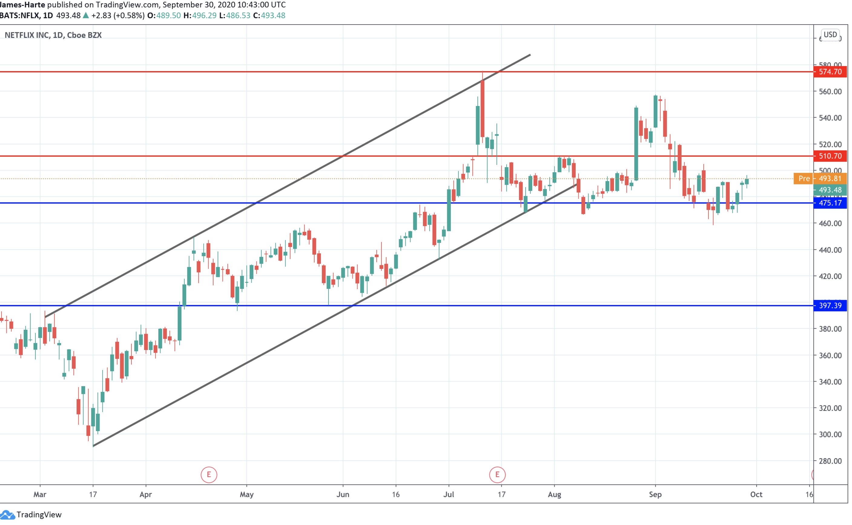 وجدت أسهم “نتفليكس” مؤخراً الدعم من جديد عند المستوى ٤٧٥.١٧. وكان هذا بمثابة محوراً رئيسياً للسعر خلال الأشهر الأخيرة. وطالما تماسكت الأسعار أعلي هذا المستوى، فإن مزيد من عمليات التداول على ارتفاع قد تُشهد. ويعد المستوى ٥١٠.٧٠ هو مستوى المقاومة التالي الذي يجب الانتباه له.