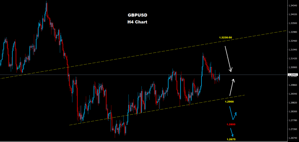 كما نرى على الرسم البياني فإن السوق لا يزال يمتلك فرص الاستمرار بهذا التداول بين مستويات الدعم الأولى 1.2900 ومستويات المقاومة 1.3250