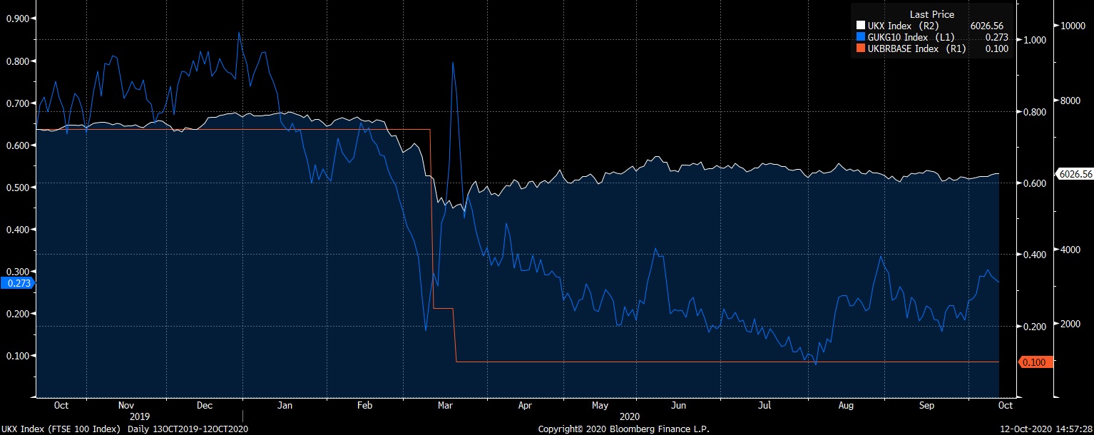 أيضاً انخفضت عائدات سندات الخزانة البريطانية لأجل 10 سنوات نقطة أساس واحدة إلى 0.27٪ حيث يسعى بنك إنجلترا للحصول على معلومات من المؤسسات المالية في المملكة المتحدة حول قدرتها على تطبيق أسعار الفائدة السلبية دون الإضرار بأعمالهم.