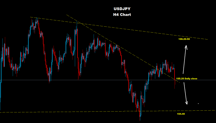 نجح الدولار/ ين مرة أخرى بالتراجع تحت مستويات الدعم 105.20 فيما لا يزال الإغلاق اليومي مستمر فوق مناطق الدعم 105.20