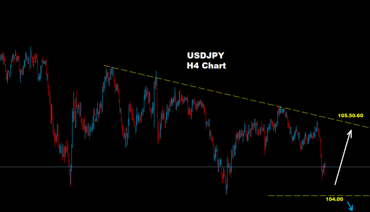 طالما السوق متماسك فوق مستويات الدعم 104.00 فإن ارتداد تصحيحي صاعد قد يطرأ نحو مناطق 104.90 و 60-105.50