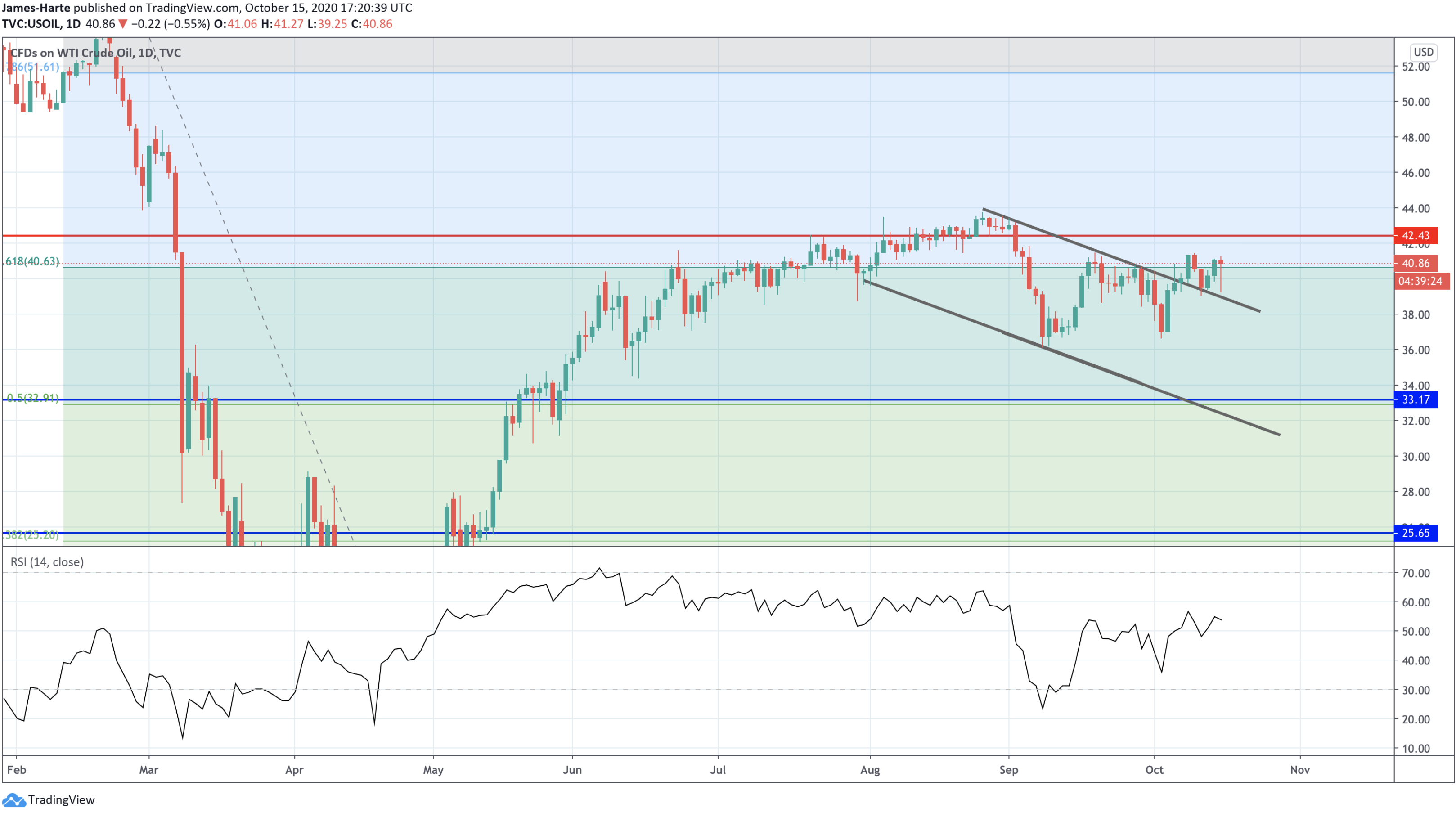 وفي الوقت الحالي، لا تزال التوقعات إيجابية حيث يتطلع المضاربون على الارتفاع إلى اختراق فوق مستوى ٤٢.٤٣ لفتح الطريق أمام مواصلة الصعود.