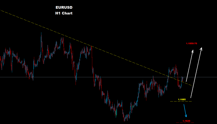 تحت مستويات 1.1685 فإن فرص مزيد من التراجع والهبوط قد تضرب السوق لإعادة اختبار حواجز دعم 1.1620