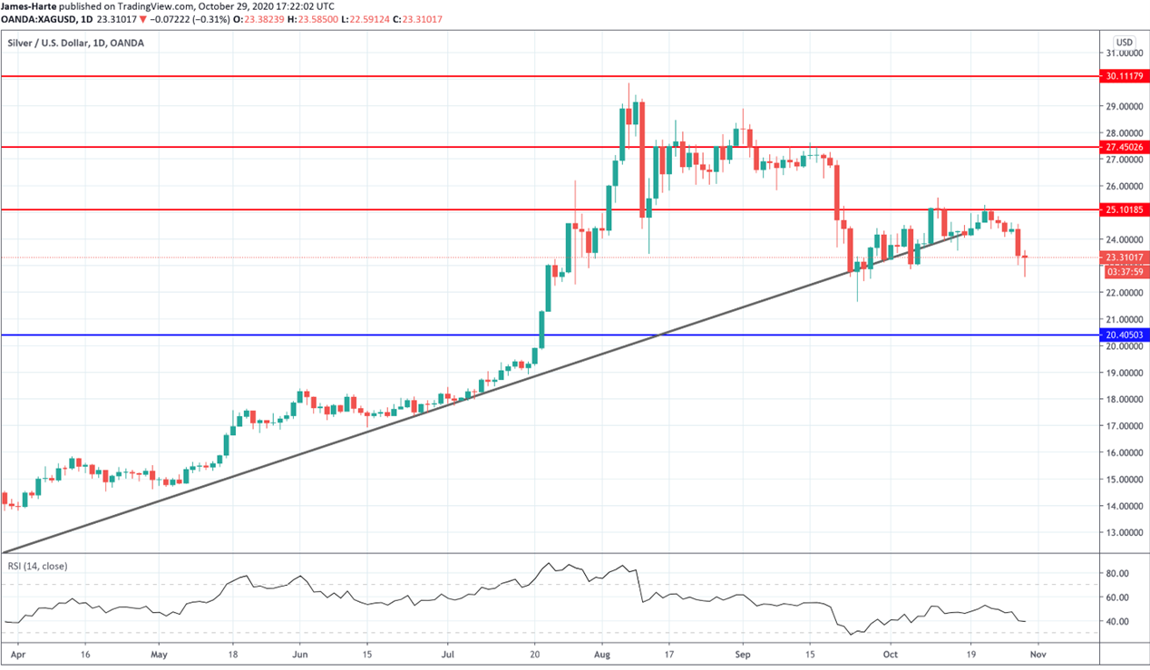 ومع بدء الدول الأوروبية الآن في العودة إلى حالة الإغلاق، فلا تبدو توقعات الفضة مشجعة للغاية هنا.