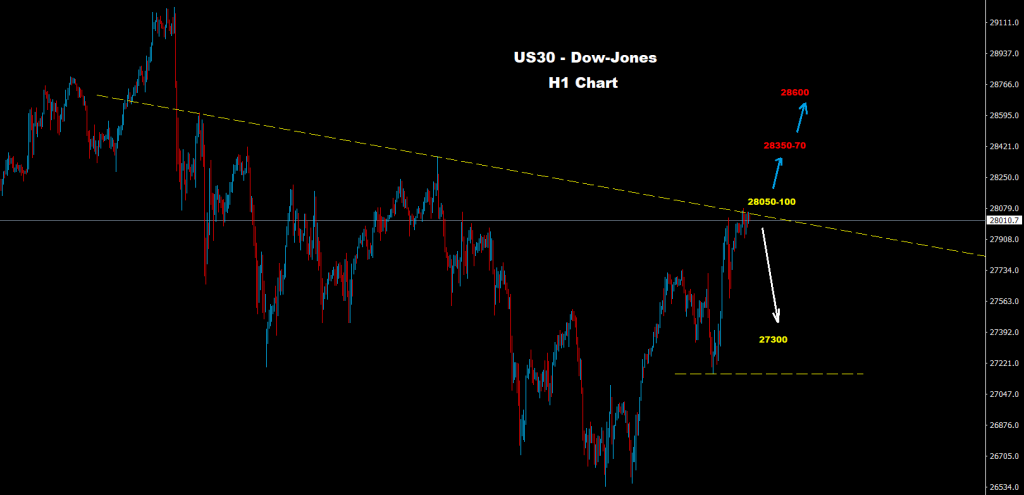 كما نرى على الرسم البياني فإن السوق يواجه مستويات مقاومة حول مناطق 100-28050 والتي طالما السوق متماسك تحتها فإن فرص تراجع تصحيحي نحو مناطق 50-27300 قد تضرب السوق