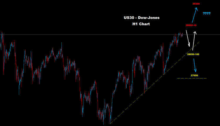 فوق مناطق 28610 فإن فرص مزيد من الارتفاع قد تضرب السوق نحو مستويات 28800 او 29200 و لكن بحذر