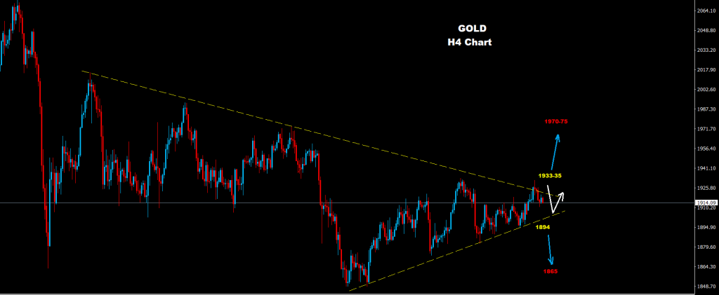 كما نرى على الرسم البياني فإن الذهب لا يزال يحافظ على منطقة التداول بالسوق مع مستويات دعم 1894 و مستويات مقاومة 1935