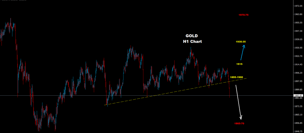 تحت مستويات 1865 فإن مزيد من التراجع والهبوط لإعادة اختبار مناطق 1848 سيكون متوقع