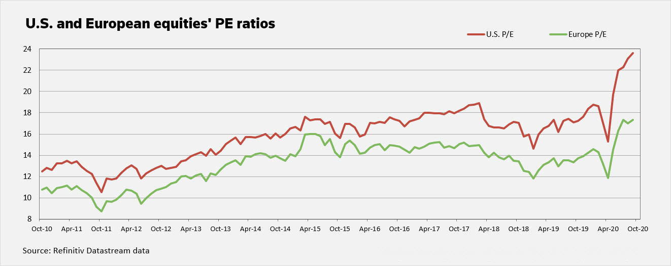 في حين قد تخلفت الأسهم الأوروبية عن وضعها في بداية العام مع الموجة الأولى لوباء كورونا، ومع استمرار أوروبا والمملكة المتحدة في محاربة الموجة الثانية تشير التوقعات أنه لن يكون هناك عمليات إغلاق جديدة واسعة النطاق وطويلة الأمد.