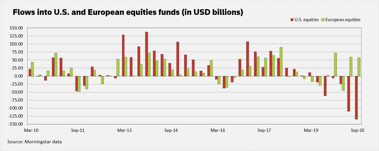 أظهرت البيانات الواردة أن تدفقات الأموال نحو الأسهم الأوروبية ارتفعت في الأشهر الأخيرة حيث يتطلع المستثمرون العالميون إلى التنويع بعيداً عن الأسهم الأمريكية وسط مخاوف من ارتفاع التقييمات والحذر قبل الانتخابات الرئاسية.