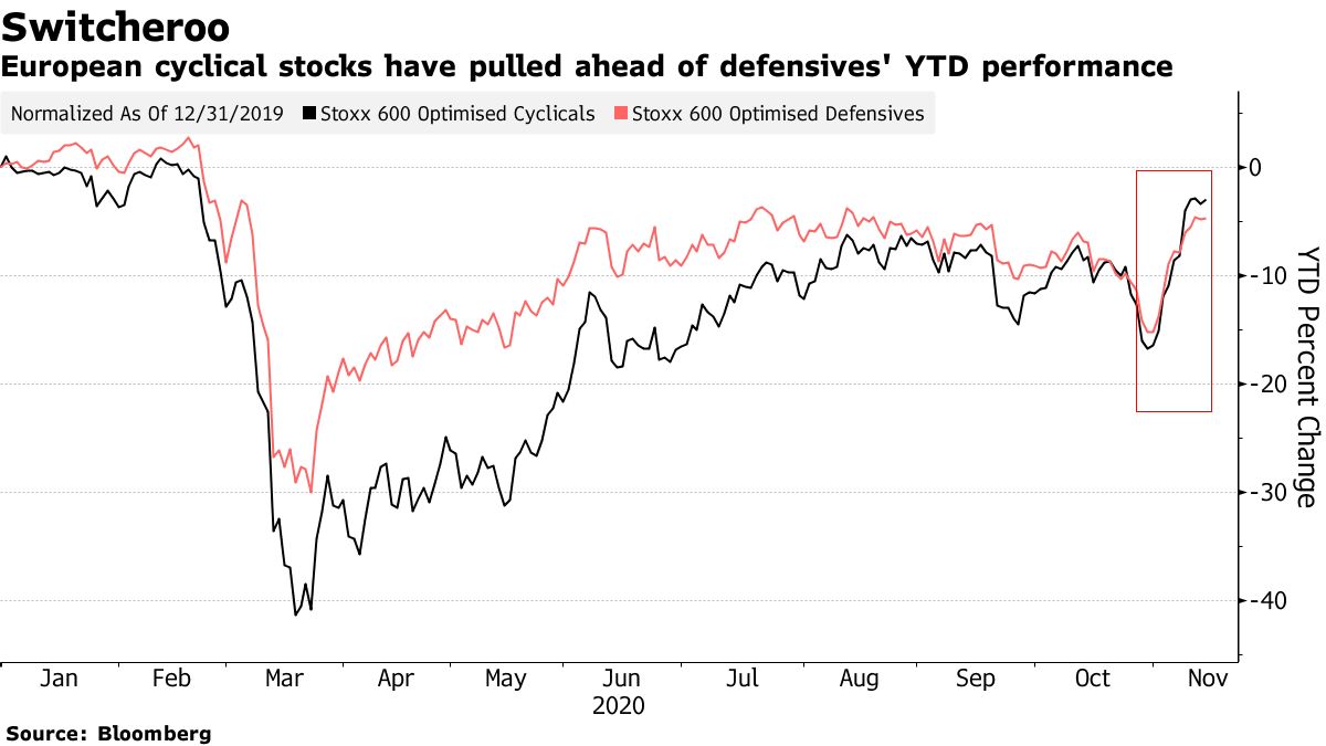 يبدو أن الأسهم العالمية تتجه نحو أعلى مستوياتها على الإطلاق بعد أن أدى التفاؤل بشأن اللقاح الأسبوع الماضي إلى قيادة التناوب بين القيمة والقطاعات الدورية. وكان أداء الصناعات الدفاعية أقل من المتوقع.