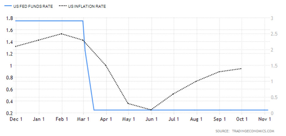 حيث ترك مجلس الاحتياطي الفيدرالي النطاق المستهدف لسعر الفائدة على الأموال الفيدرالية دون تغيير عند 0-0.25٪ خلال اجتماعه الأسبوع الماضي حيث اتخذ صناع السياسة نهج الانتظار والترقب وسط الحالة السابقة لعدم اليقين بشأن الانتخابات الرئاسية الأمريكية.
