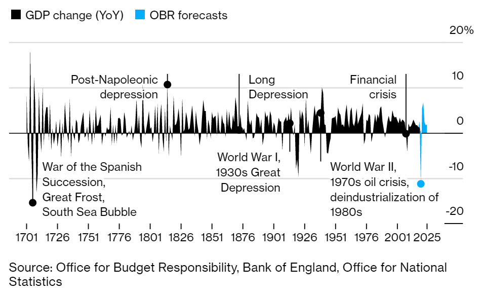 هذا مع توقعات أن ينكمش الاقتصاد بنسبة 11.3٪ في هذا العام 2020، وهو أكبر انخفاض منذ أكثر من ثلاثة قرون.