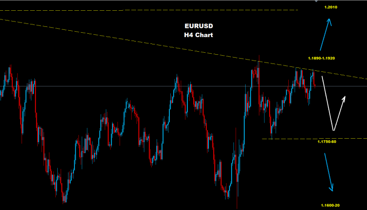 فوق مستويات 1.1920 فإن اليورو سيمتلك فرصاً لمزيد من الارتفاع مع مستويات مقاومة قديمة على مناطق 1.2010