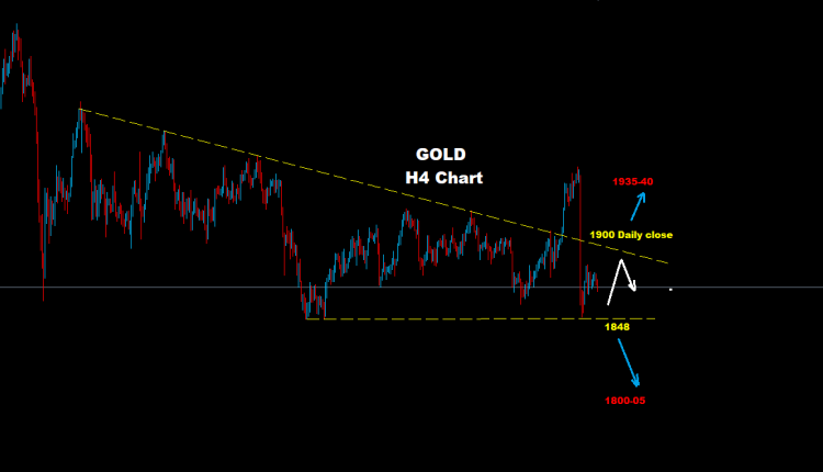 نجح المعدن الثمين بالحفاظ على تداولاته فوق مستويات الدعم 1848 حتى الآن