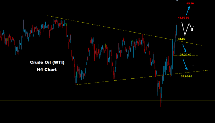 نجح النفط الخام بالاستمرار بالصعود فوق مناطق 41.30 حيث نجح بضرب أسعار عليا لمناطق 43.05