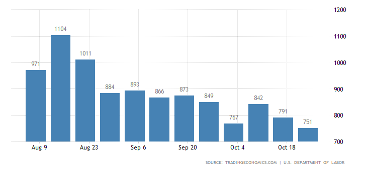 يترقب اليوم أيضاً بيانات إعانة البطالة الأسبوعية الأولية حيث من المتوقع أن يقدم 740 ألف عامل أمريكي إعانات بطالة خلال الأسبوع المنتهي في 31 أكتوبر.