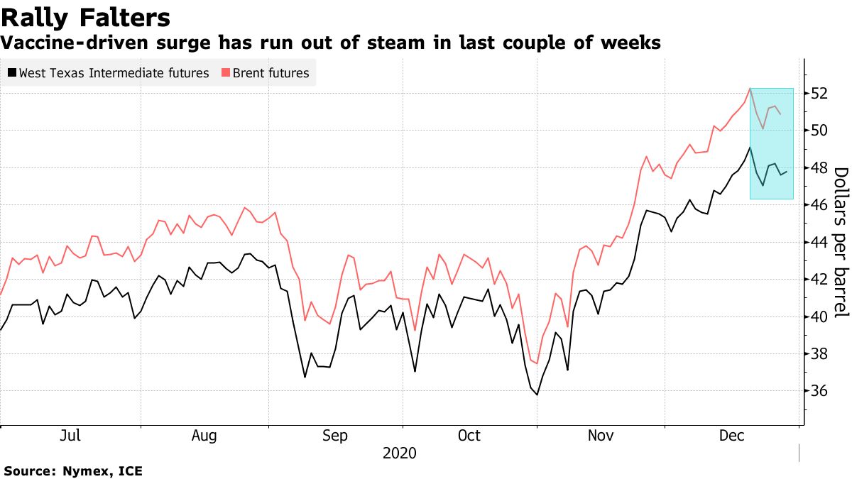 حيث قد تعثر ارتفاع أسعار النفط الخام المدفوع باللقاحات في الأسبوعين الماضيين على مؤشرات أنه ربما يكون قد تجاوز التعافي في الطلب على الطاقة.