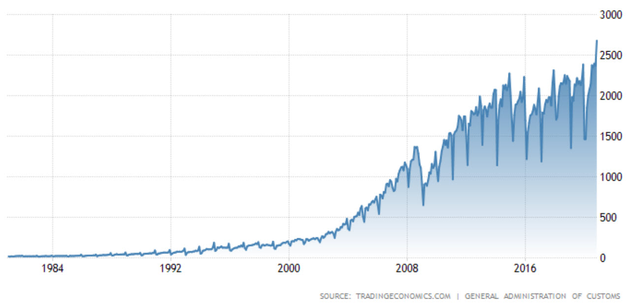 لكن بالرغم من تلك المخاوف، أظهرت الصادرات الصينية قفزة بنسبة 21.1٪ على أساس سنوي إلى أعلى مستوى لها على الإطلاق عند 268.07 مليار دولار في نوفمبر 2020.