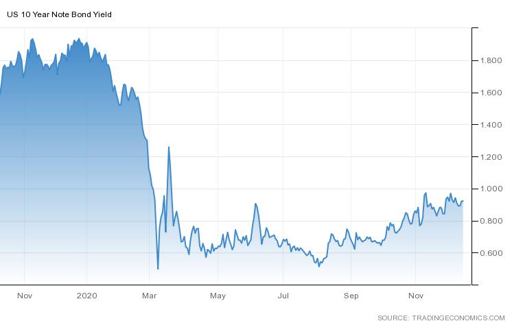 تظل عائد سندات الخزانة لأجل 10 سنوات فوق 0.90٪ بقليل، وسط تكهنات بأن بنك الاحتياطي الفيدرالي سيقدم توجيهات بشأن برنامج شراء السندات أو يعدله.