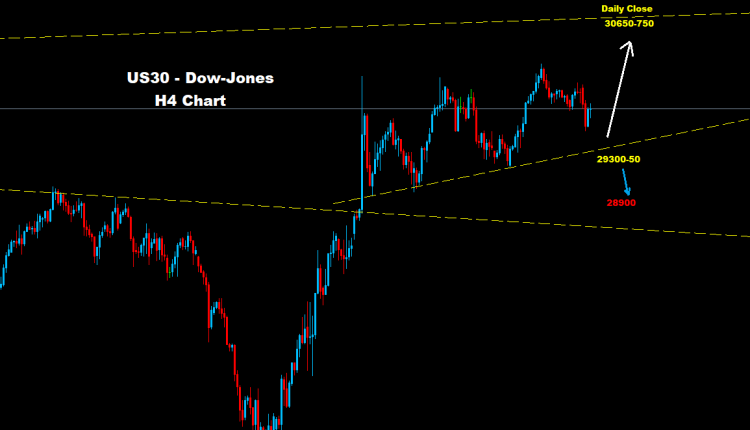 كما نرى على الرسم البياني وطالما السوق يحافظ على تداولاته فوق مستويات 50-29300 فإن فرص التقدم و الارتفاع ستستمر نحو مستويات 30250 و 750-30650