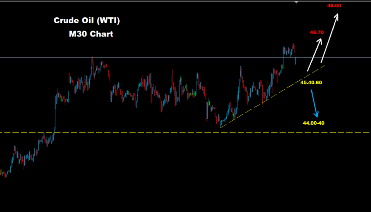 تحت مستويات 45.40 فإن مزيدا من التراجع والهبوط سيكون متوقعاً مع مستويات دعم أخرى على أسعار 43.90