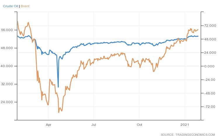 يستمر النفط في مكاسبه على أساس شهري عند أعلى مستوى منذ فبراير 2020. وكذلك يشهد أعلى مستوياته في حوالي أسبوع مع توقعات بتضيق الإمدادات العالمية لتعويض المخاوف من أن طرح لقاح كورونا الوعر سيزيد من حدة الطلب.