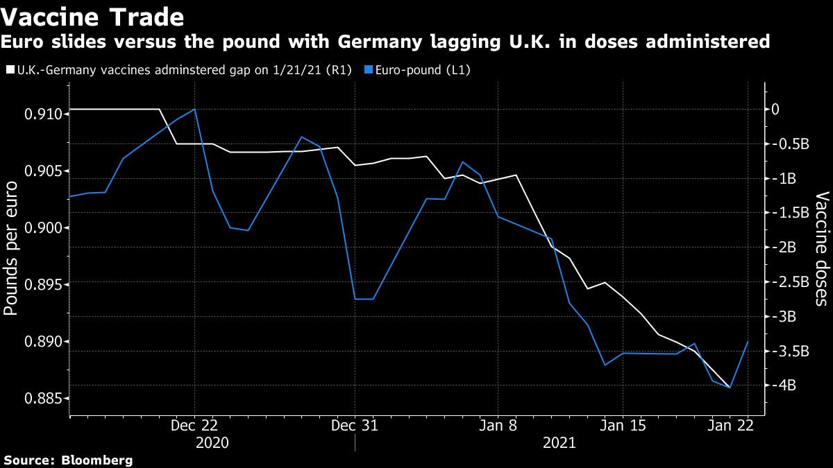 لكن لم تحدث القفزة الكبيرة بسبب جائحة كورونا وآثارها على اقتصاد المملكة المتحدة، ولكن ما زال يراهن تجار العملات على ارتفاع الجنيه الإسترليني على الانقسام الكبير التالي بين المملكة المتحدة والاتحاد الأوروبي في عمليات التلقيح الجارية.