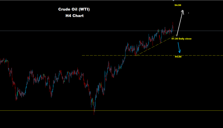 أي إغلاق يومي تحت مستويات 47.30 قد يدفع بمزيد من التراجع والهبوط نحو مستويات 44.00