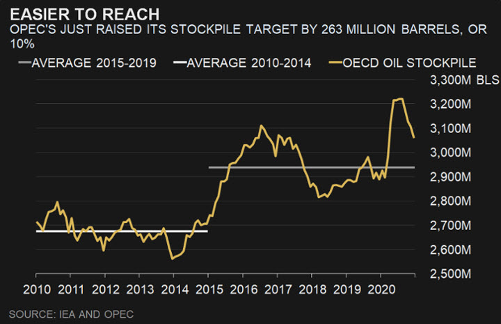 سعى أعضاؤها إلى خفض حجم النفط المخزن في الخزانات وكهوف الملح والسفن وخطوط الأنابيب إلى مستوى متوسط الخمس سنوات، وذلك على الرغم من أنهم لم يكونوا محددين تماماً بشأن مقياس الخمس سنوات الذي كانوا يدورون فيه.