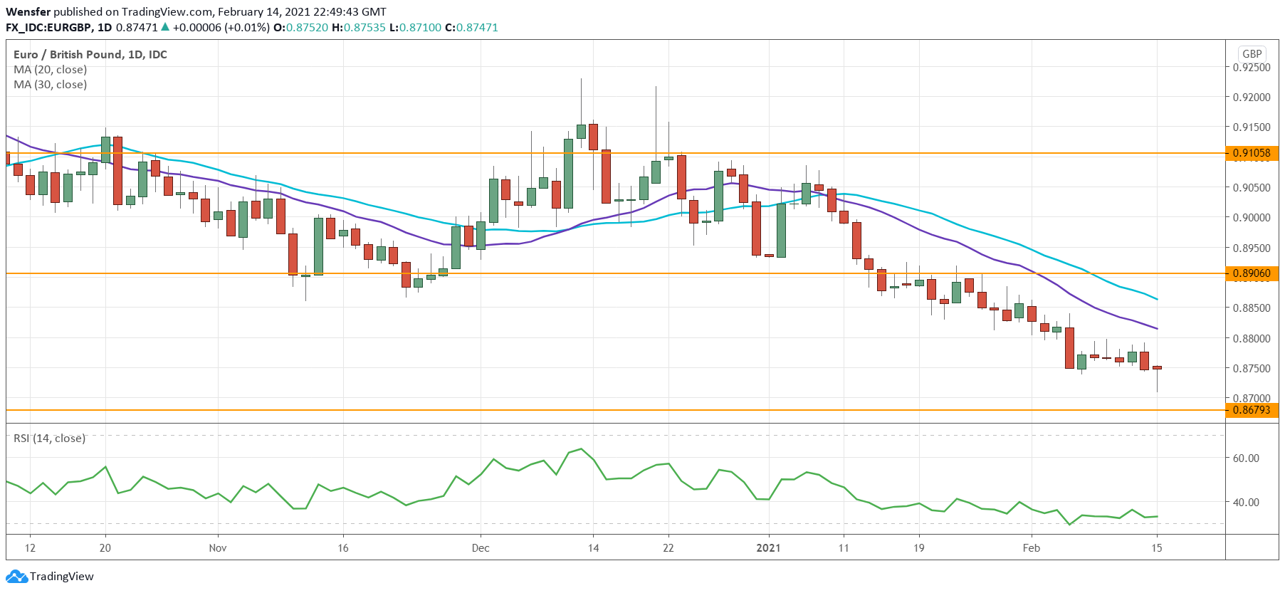 يواصل اليورو فقدان قوته أمام الجنيه بسبب عمليات البيع الفنية لا الأساسية. ومن الجدير بالذكر أن المملكة المتحدة والاتحاد الأوروبي لا يزالان يتصارعان بشأن العلاقات التجارية، خاصة فيما يتعلق بتكافؤ الخدمات المالية، والذي يمثل ٤٠٪ من صادرات الخدمات إلى الاتحاد الأوروبي. وقد تراجعت التقلبات في الوقت الحالي حيث لم يلتزم المتداولون بمراكزهم بعد، لكن أخبار البريكست ٢.٠ ستعود بالتأكيد.