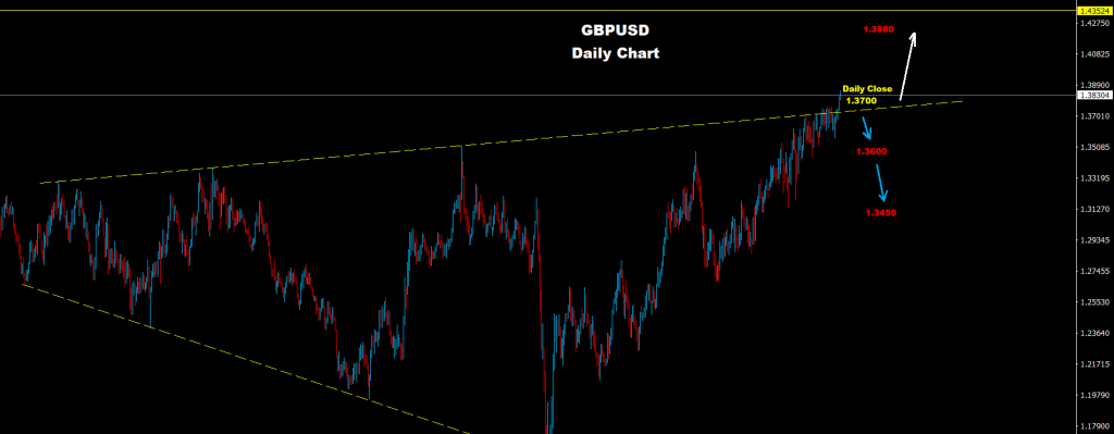 أي إغلاق يومي تحت مستويات 1.3700 سيعيد فرص مزيد من التراجع التصحيحي لمناطق 1.3600 وربما نحو 1.3450