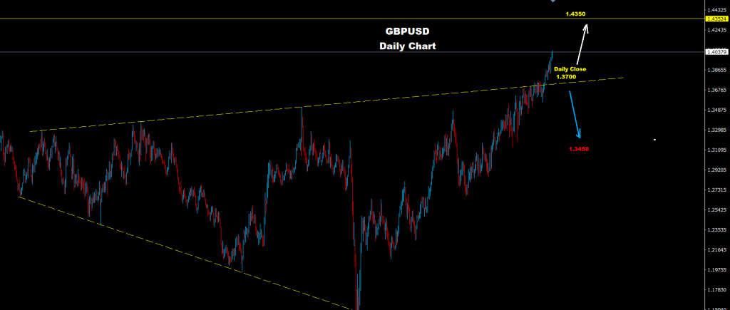 طالما الإغلاق اليومي مستمر فوق مستويات 1.3700 فإن الموجة الصاعدة ستستمر نحو أهداف 1.4150 و 1.4350