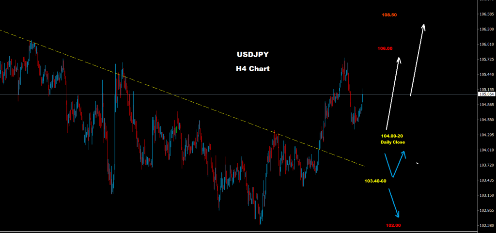 طالما السوق متماسك بالإغلاق اليومي فوق مستويات 20-104.00 فإن موجة ارتفاع ستكون متوقعة نحو مناطق 106.00 و 108.50