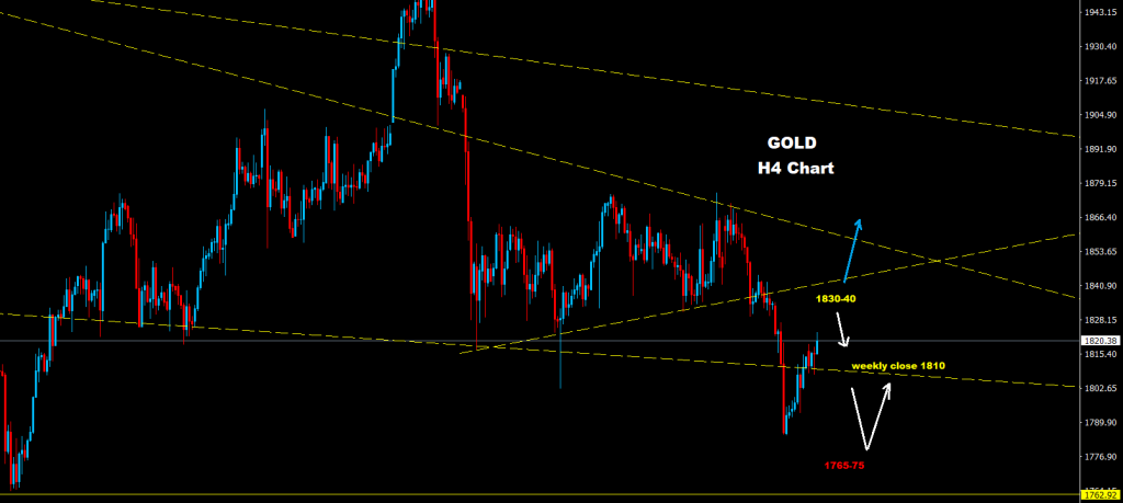 أي إغلاق أسبوعي تحت مستويات 1810 قد يضع الذهب ضمن موجة تراجع وهبوط جديدة