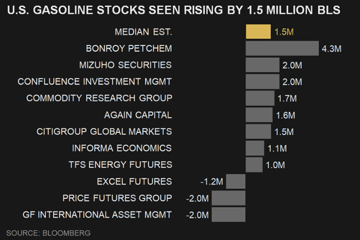 أفاد معهد البترول الأمريكي أن نواتج التقطير ومخزونات البنزين انخفضت بمقدار 1.62 مليون برميل ومقدار 240 ألف برميل على التوالي الأسبوع الماضي.