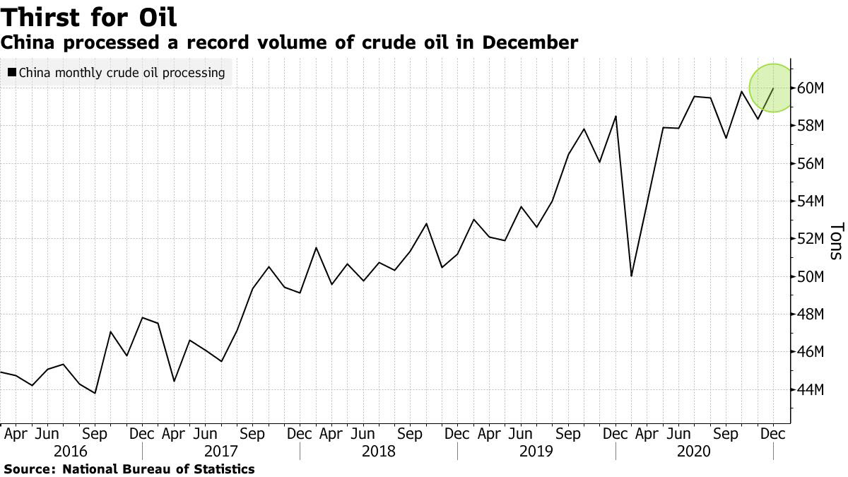 خفضت مخزوناتها من النفط الخام بمعدل قياسي في ديسمبر مع انخفاض واردات البلاد ومع معالجتها لأكبر حجم على الإطلاق من النفط.